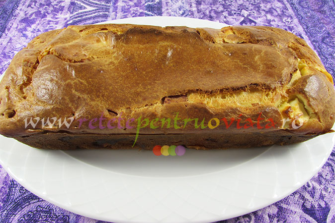 - Introducem tava in cuptorul preincalzit si coacem checul aperitiv timp de 40 minute, pana se rumeneste.