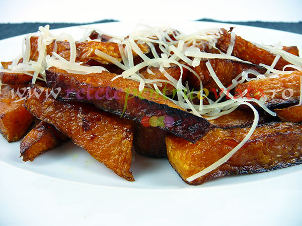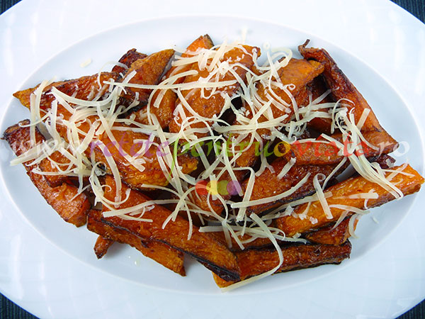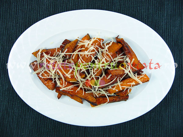 Putem servi garnitura de dovleac pane cu orice tip de carne fripta sau prajita.Aceasta garnitura poate inlocui cu succes garnitura de cartofi prajiti. Este chiar mai buna, mai dulce si mai aromata! Garnitura de dovleac pane este foarte gustoasa si se poate consuma si fara carne, cu cascaval ras pe deasupra.